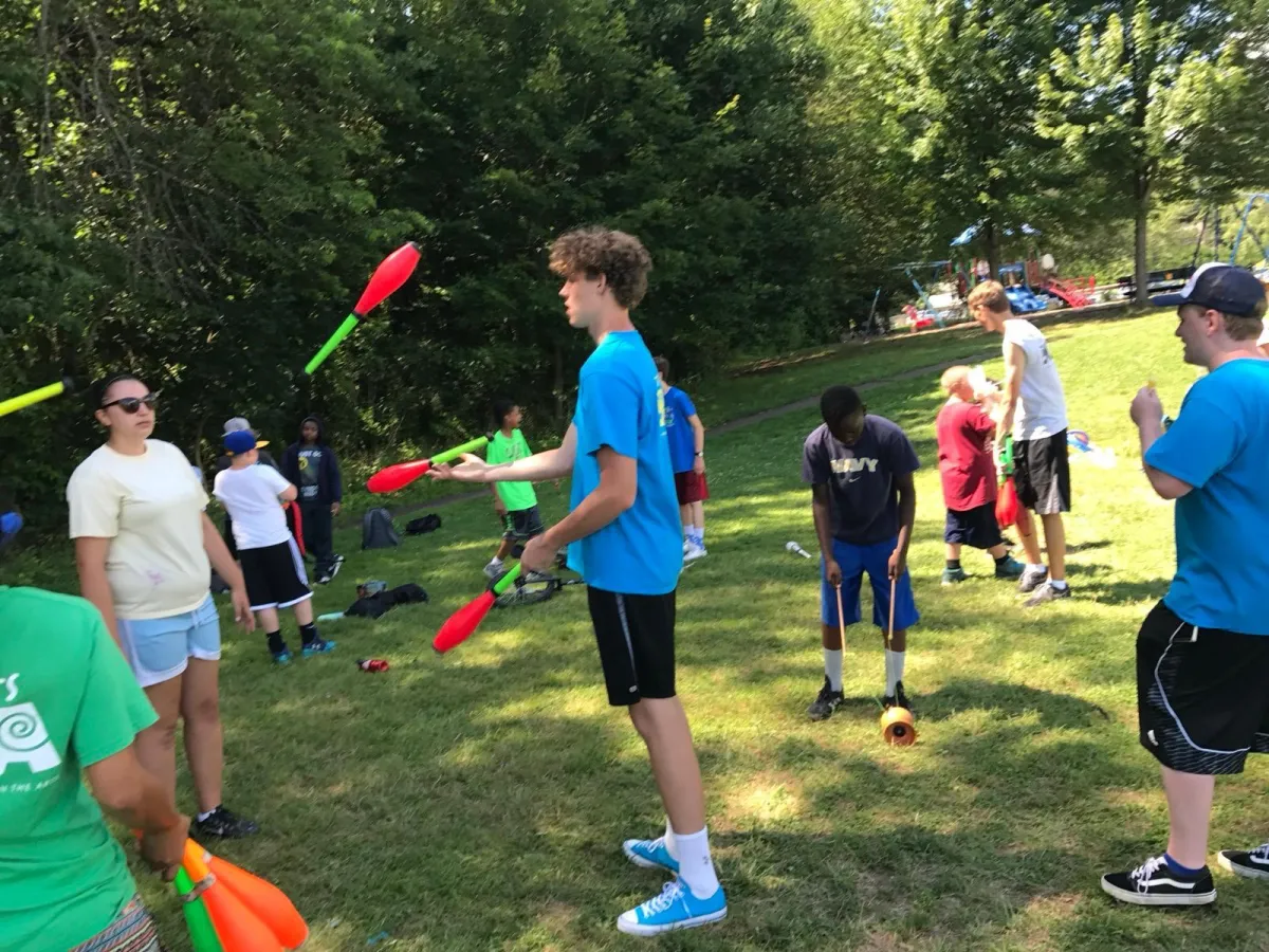 Younger campers (8–11) focus on exploration, coordination, and playful collaboration. Older campers (12–15) dig into technique, leadership, and act creation.